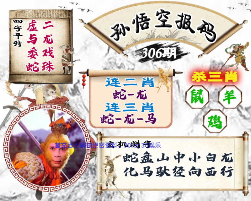 | 306期:复式连肖 复式连肖:[鼠龙蛇]-[虎猪兔]-[猴狗羊] |